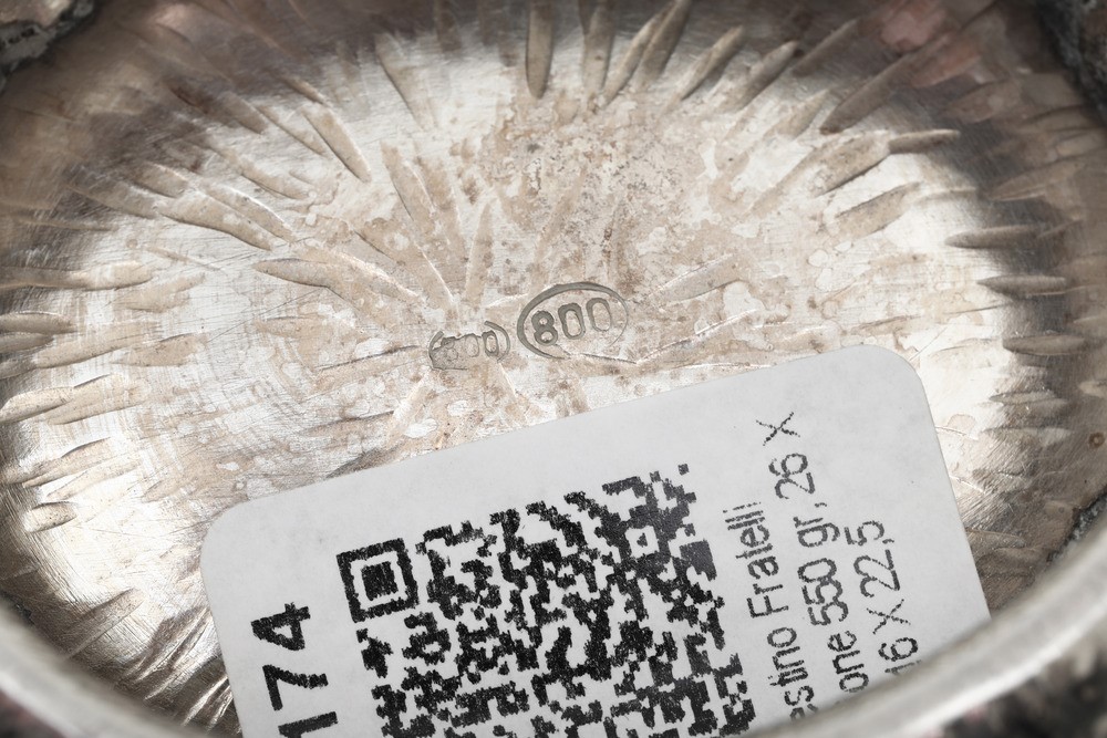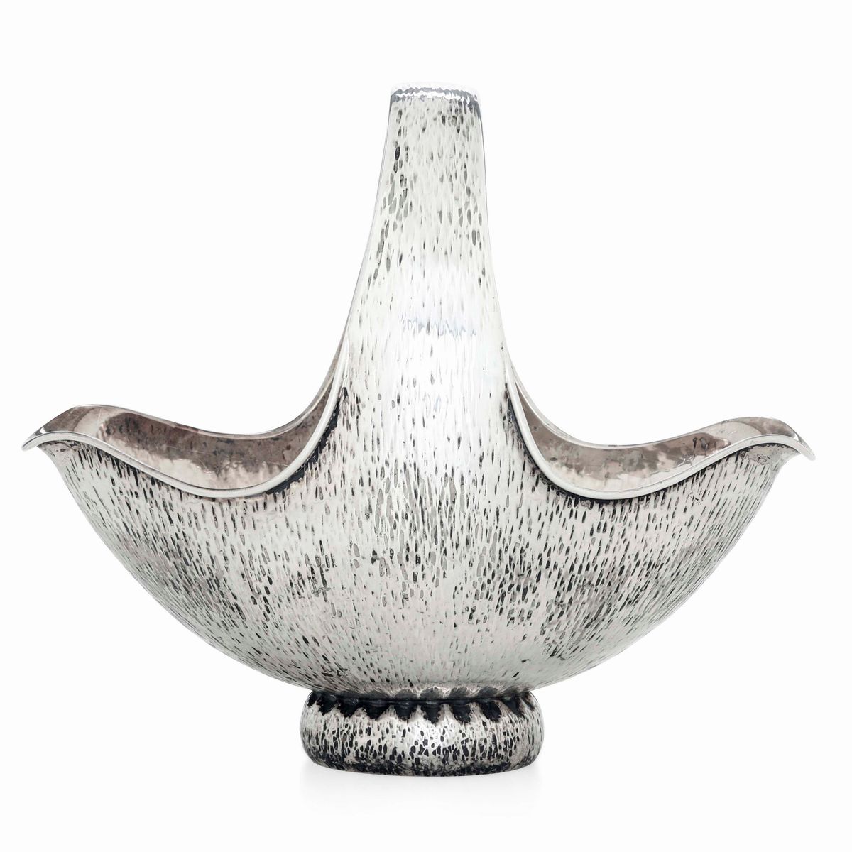 Cestino con manico ad arco. Argenteria artistica milanese del XX secolo. Argentiere F.lli Cacchione