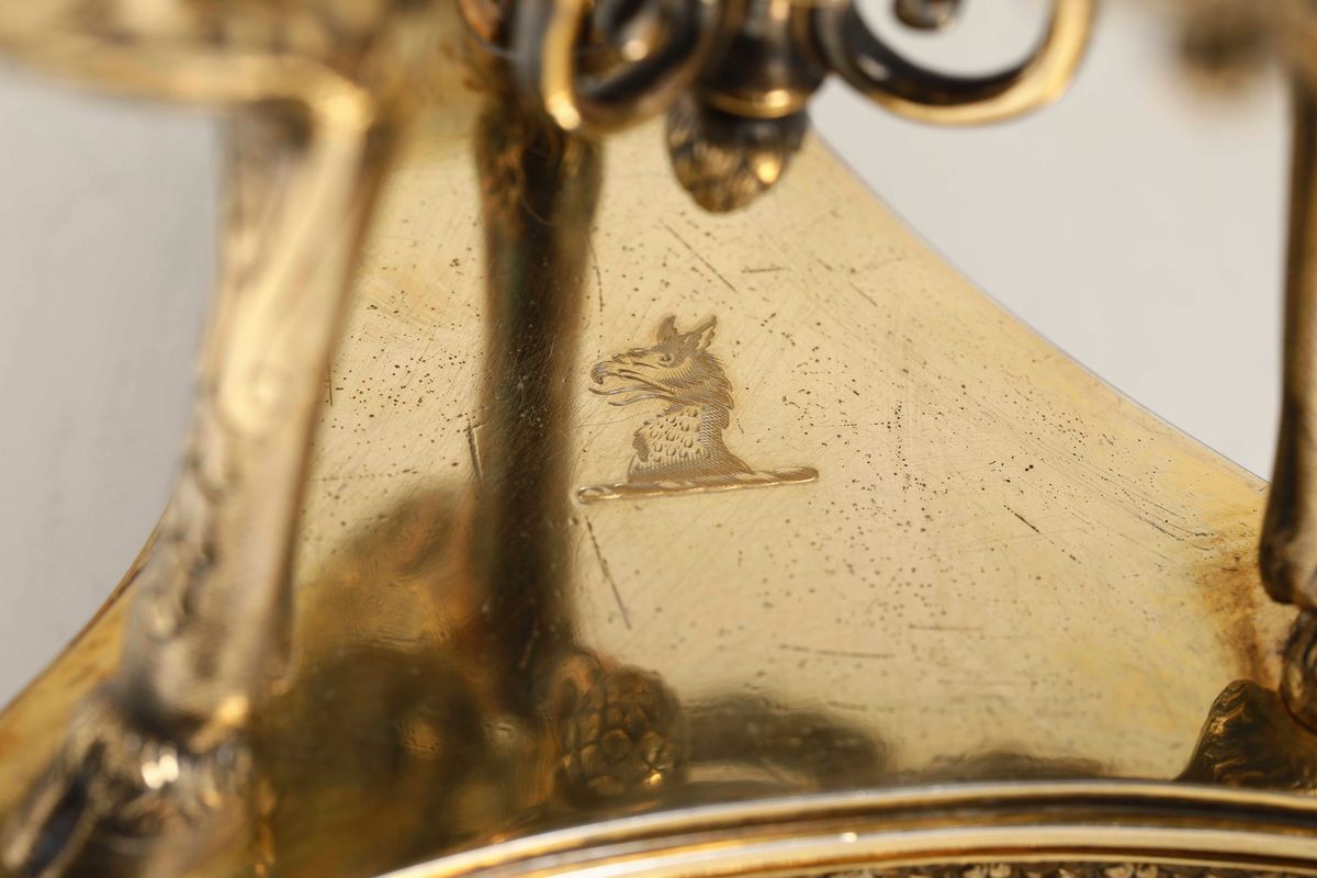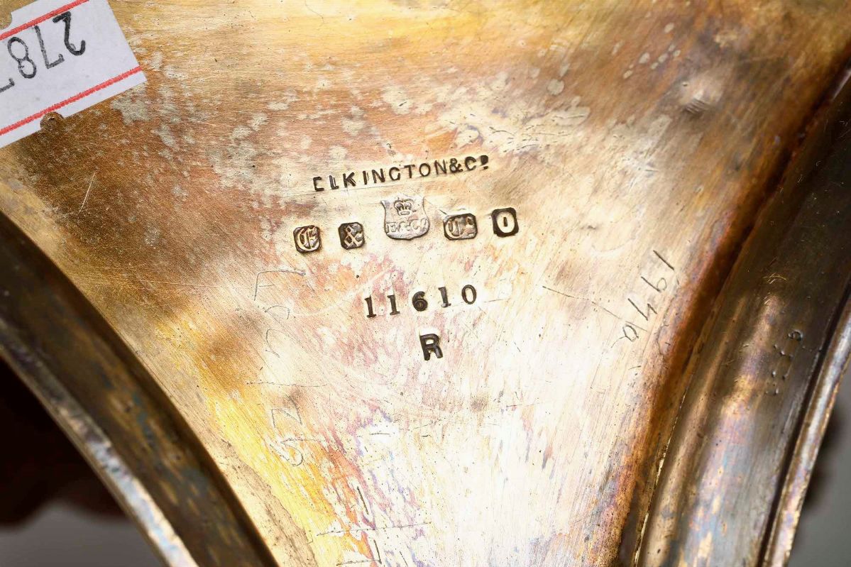 Coppia di alzate. Metallo dorato e vetro. Manifattura Elkington, Inghilterra XIX-XX secolo