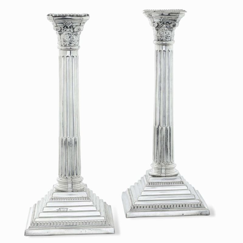Coppia di candelieri. Birmingham 1958, argentiere Alexander Smith