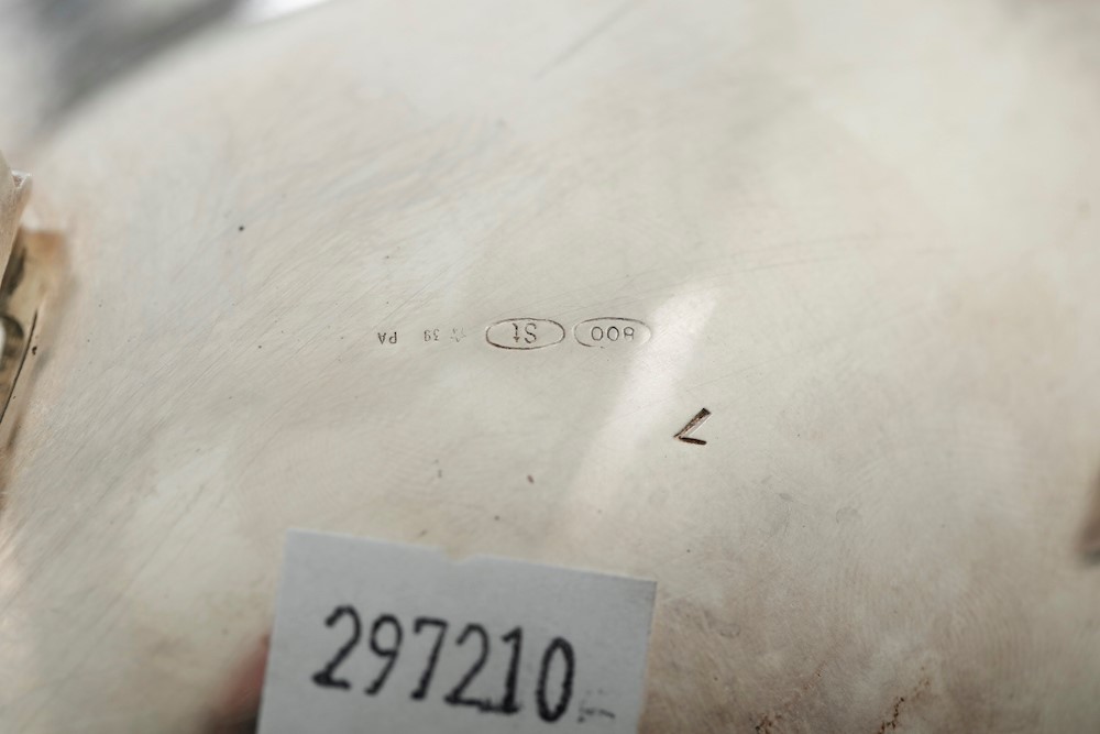 Coppia di formaggiere con cucchiaini. Argenteria siciliana del XX secolo. Argentiere Eugenio Stancampiano, Palermo