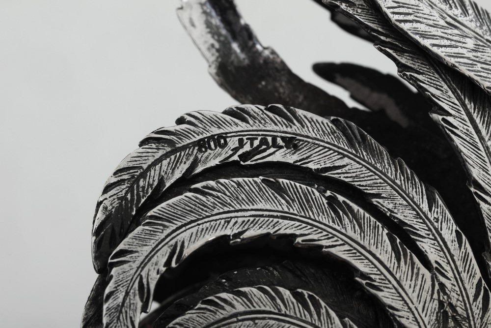 Coppia di galli combattenti. Argenteria italiana del XX secolo