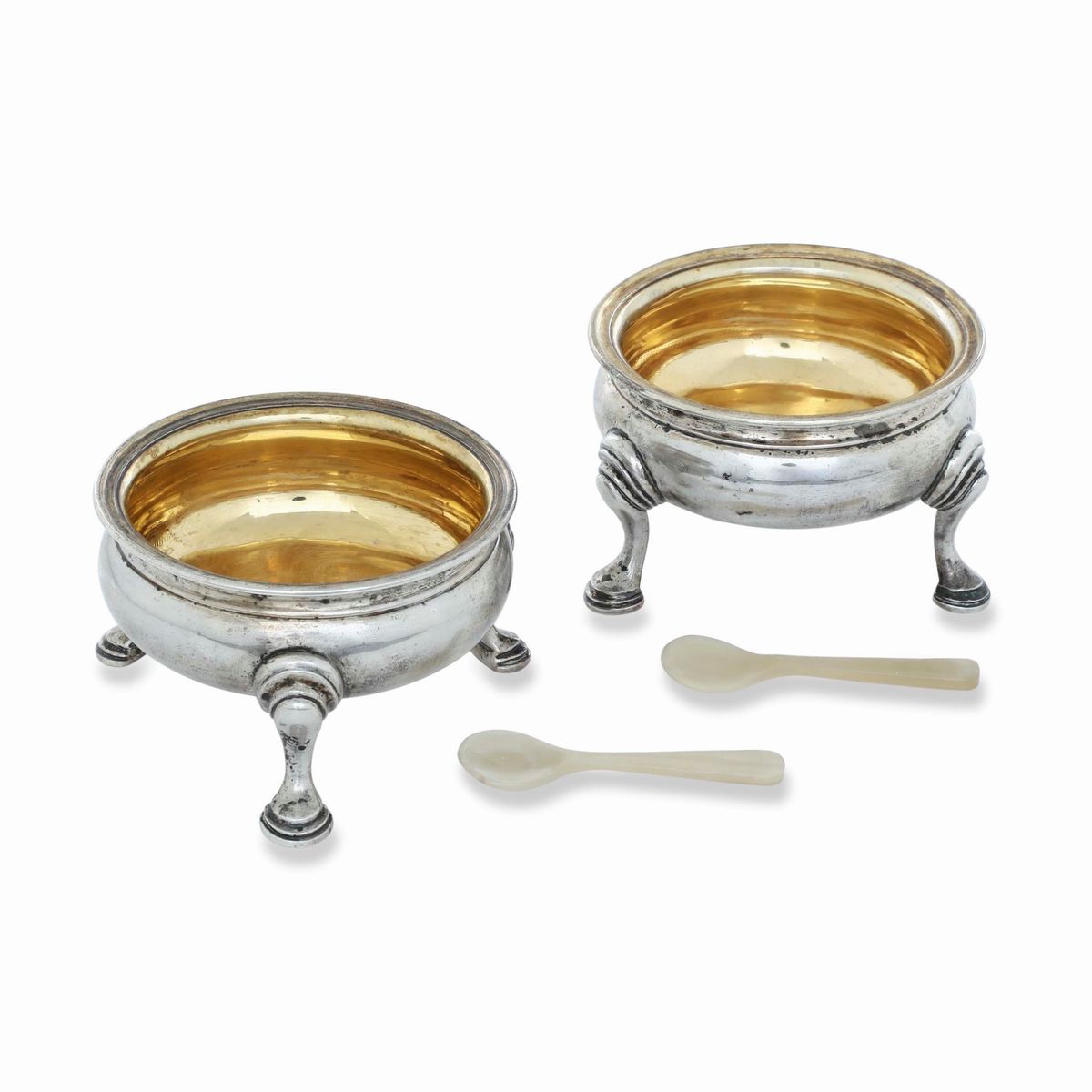 Coppia di saliere in argento sbalzato, cesellato, fuso e dorato, Firenze 1770 circa, argentiere Zanobii Biagion