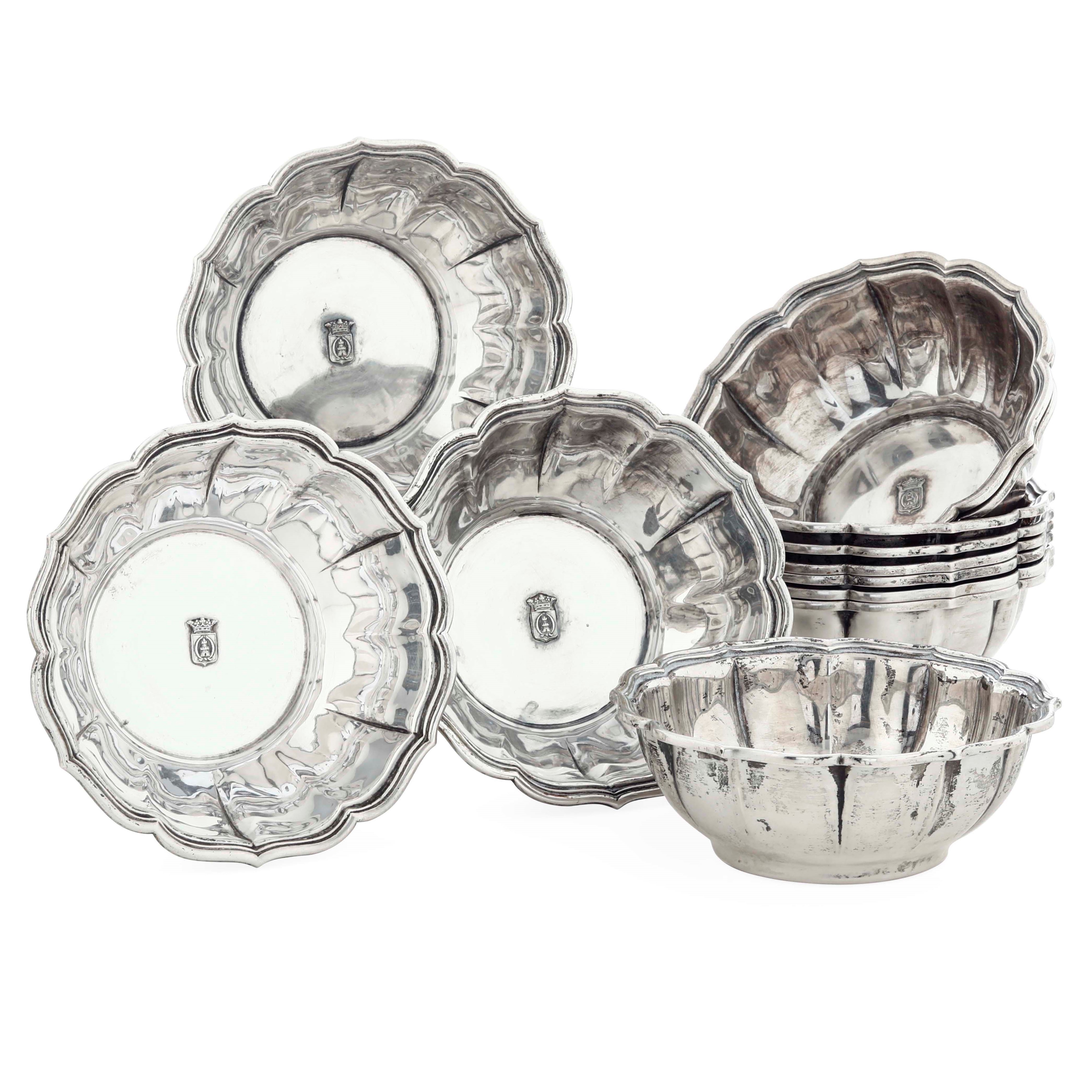 Dodici ciotole sagomate. Argenteria milanese del XX secolo. Argentiere Giacchè