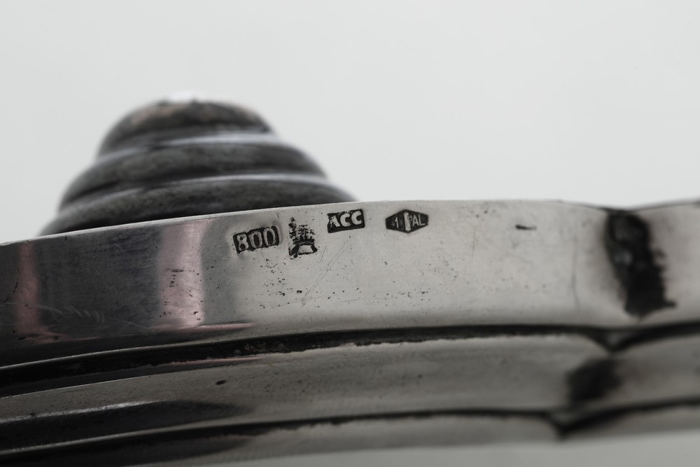 Presentoire a specchio. Argenteria italiana del XX secolo. Marchio con fascio littorio in uso dal 1935 al 1945. Argentiere Cesa, Alessandria