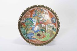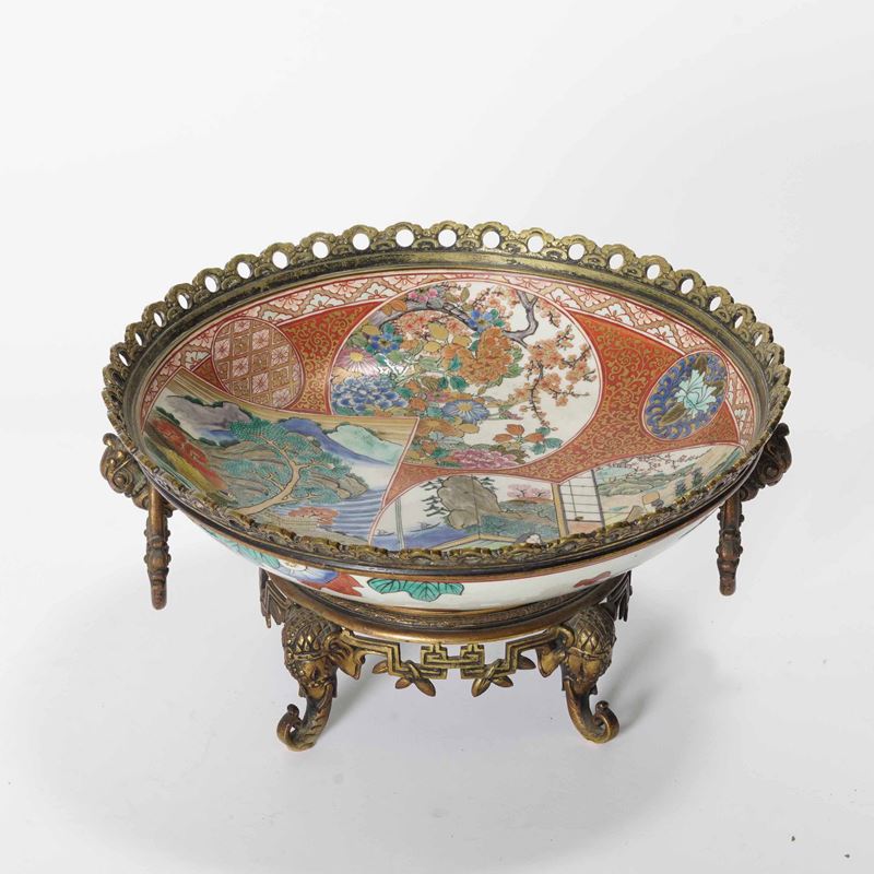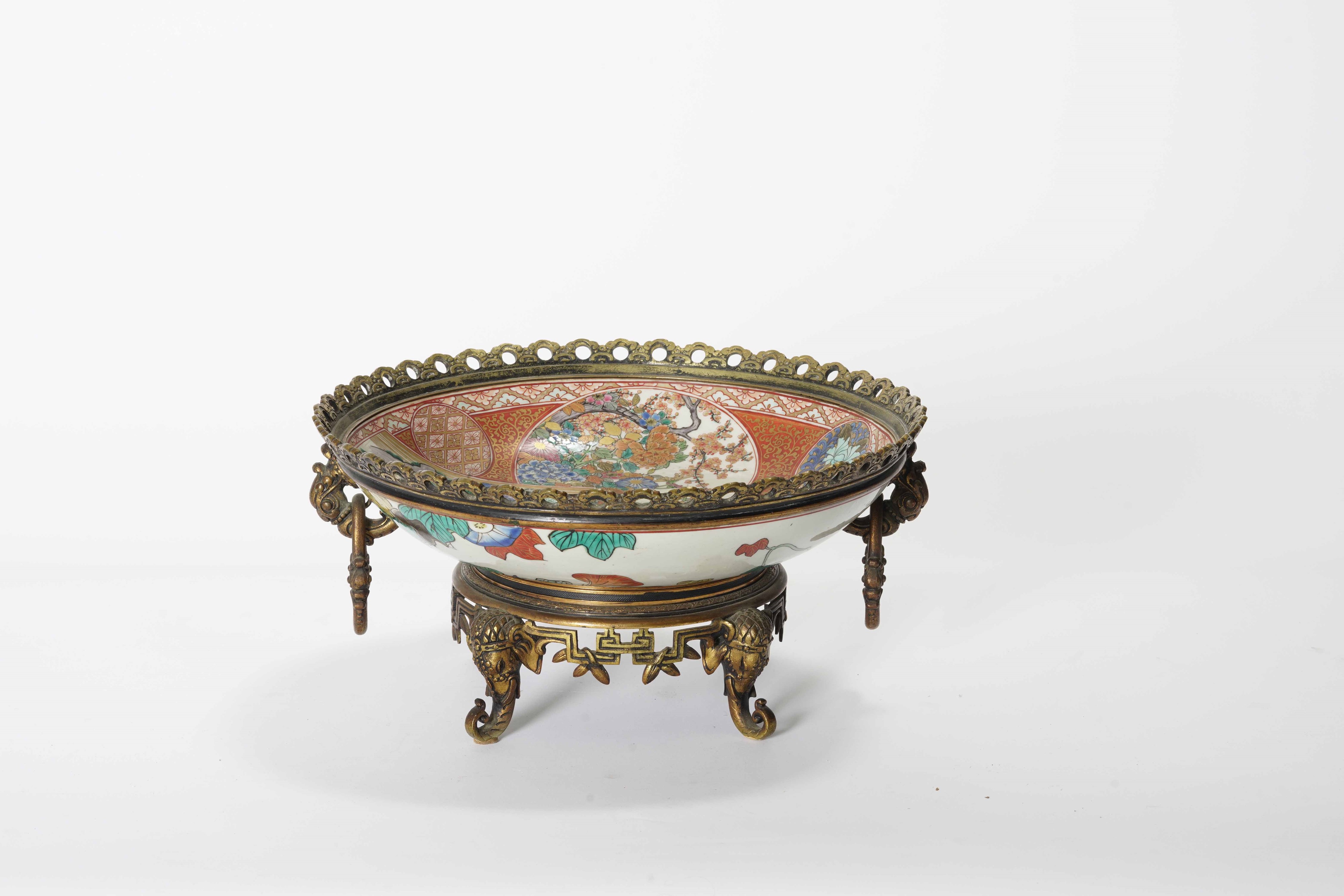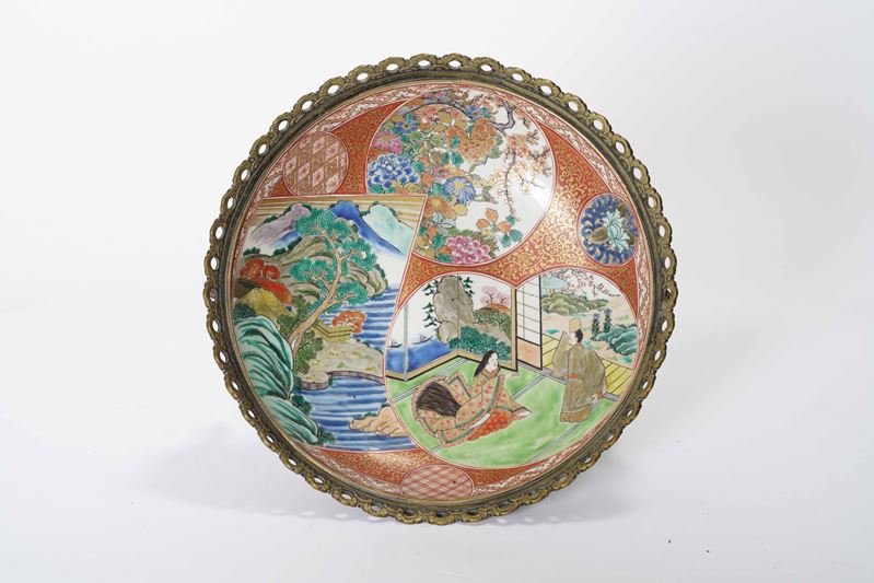 Ciotola in porcellana Kutani con decori naturalistici e figure entro riserve, Giappone, periodo Meiji (1868-1912)