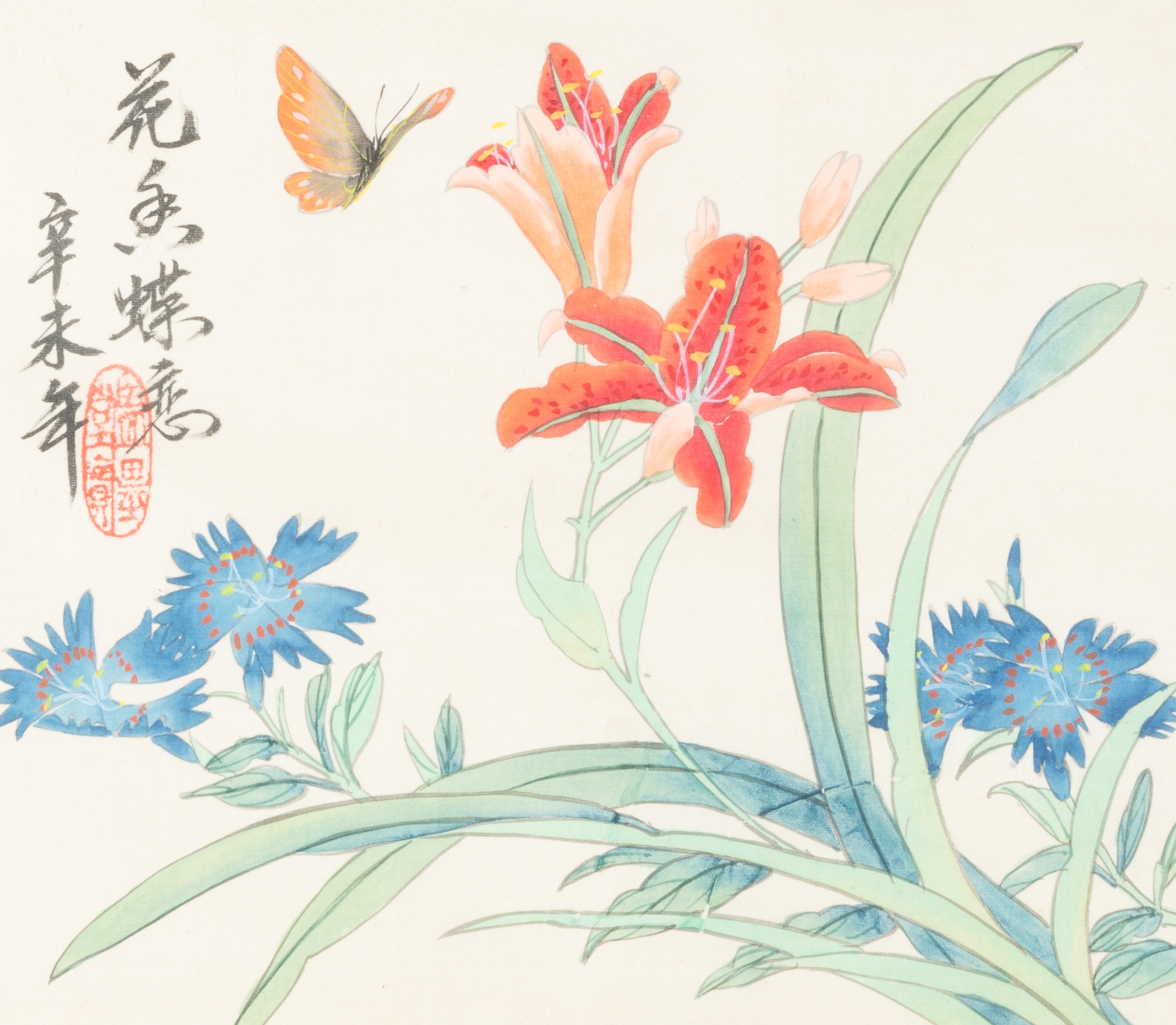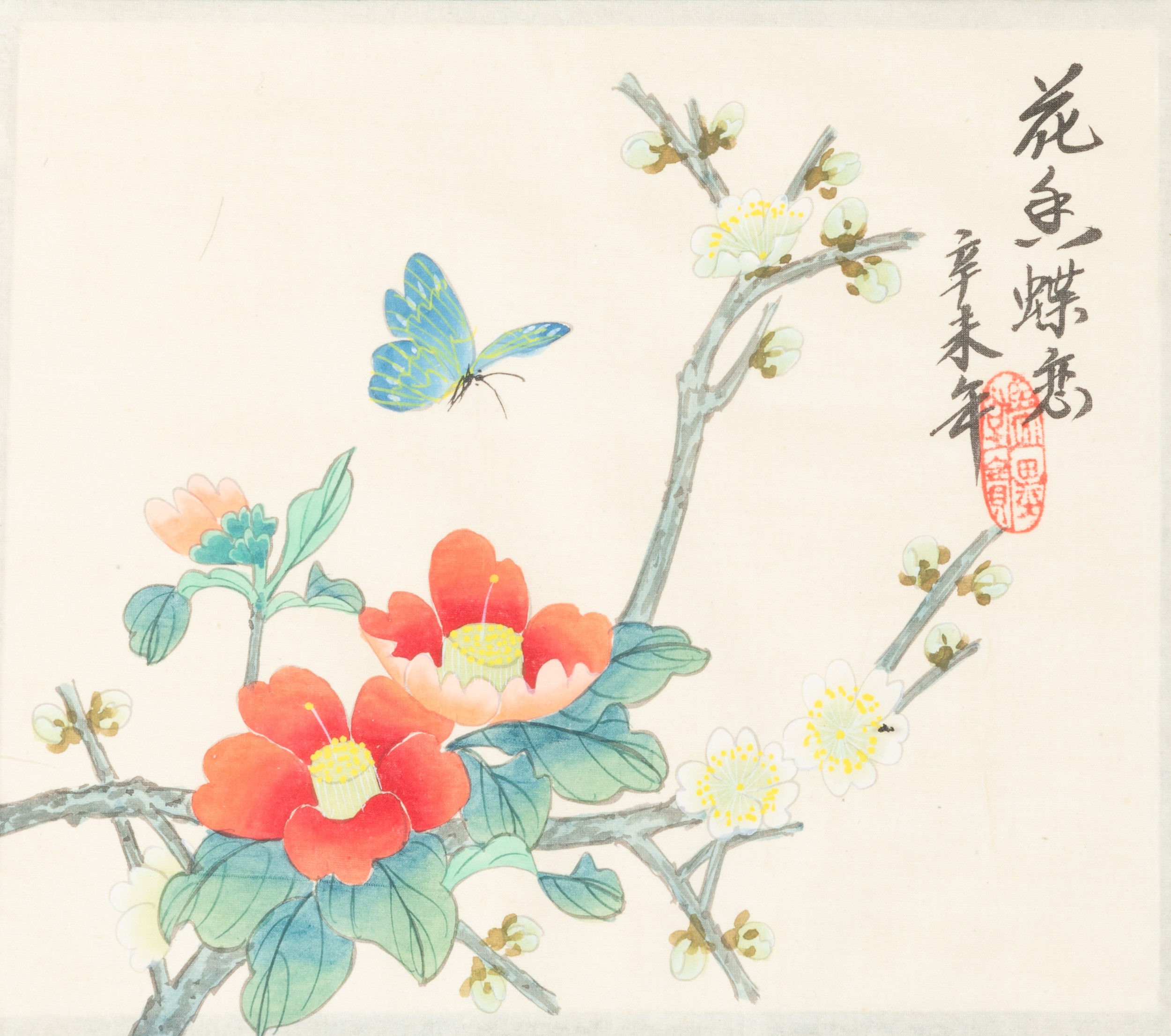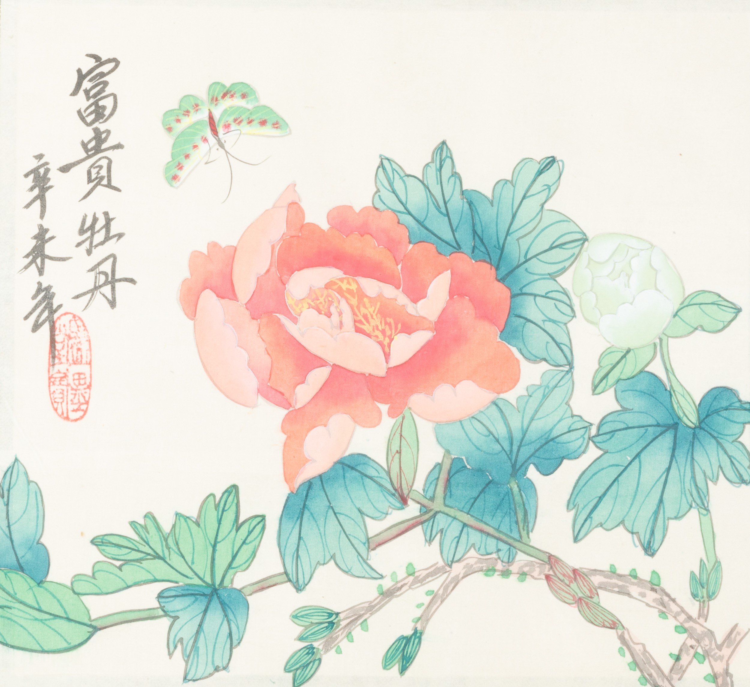 Lotto composto da sei dipinti su seta raffiguranti soggetti naturalistici con iscrizioni, Cina, Repubblica, XX secolo