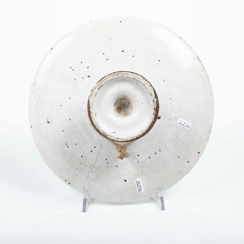 Dimensioni: altezza cm 8 circa; diametro cm 25,8 Conservazione: qualche felatura e piccola sbeccatura ai bordi