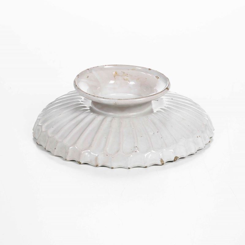 Maiolica. Marca: assente. Dimensioni: altezza cm 6,5; diametro cm 22. Conservazione: ottima; insignificanti sbeccature al bordo superiore