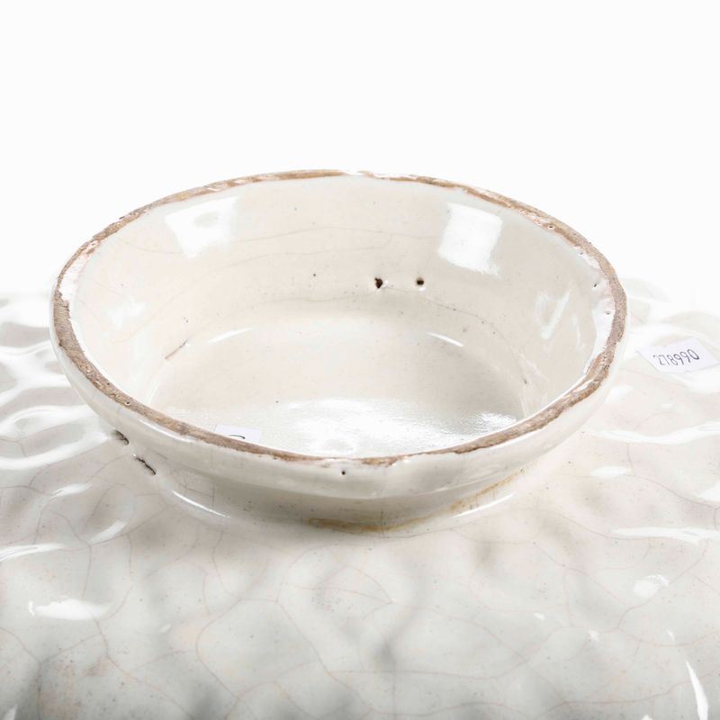 Maiolica dipinta in policromia. Dimensioni: altezza cm 9,5; diametro cm 31,2. Conservazione: ottima; insignificanti sbeccature al bordo; craquelures