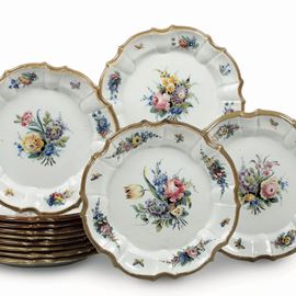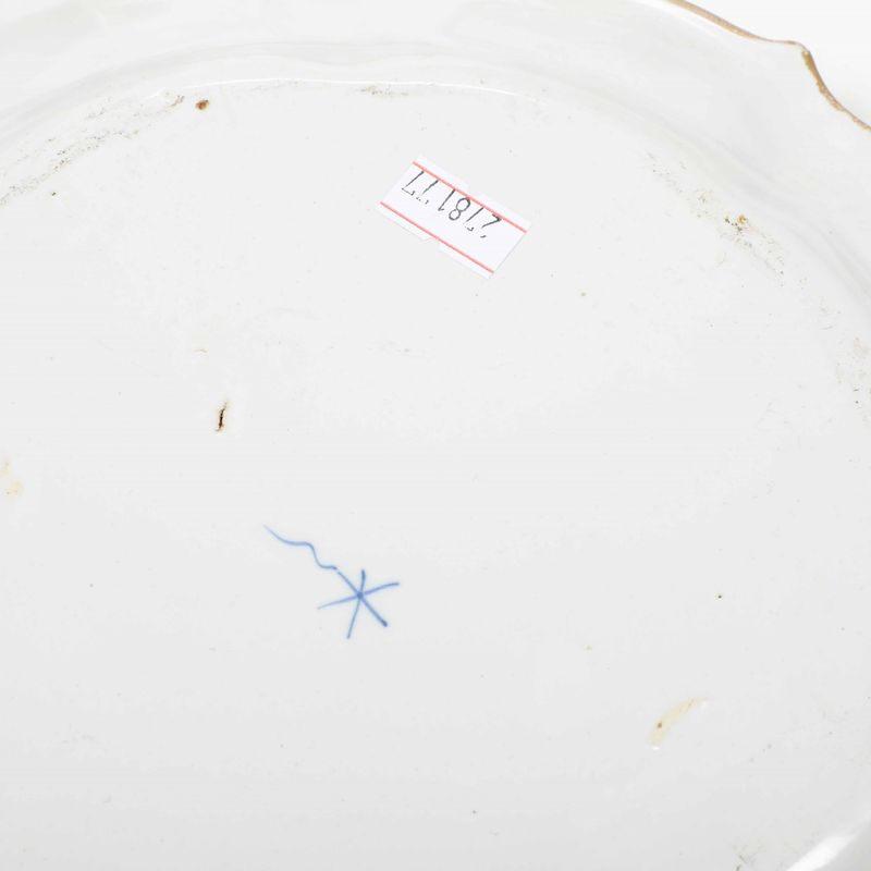 Diametro cm 26 circa. Conservazione: ottima; qualche piatto con usure e sbeccature ai bordi; tre pezzi con felature