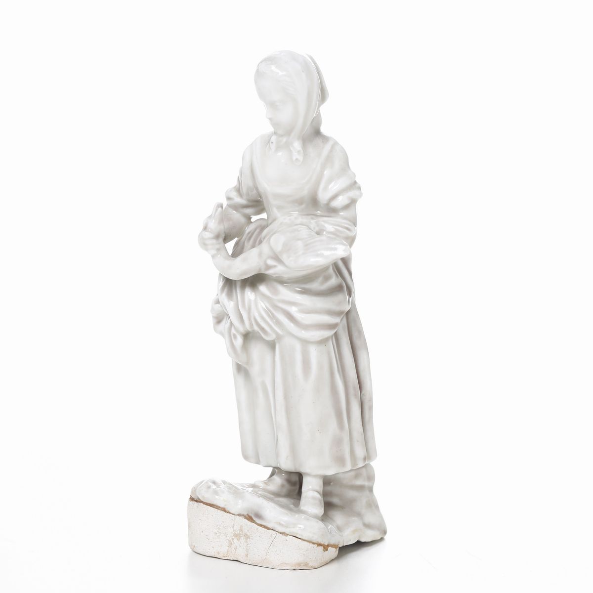 Figurina “Ragazza con l’oca” Torino, Manifattura di Vinovo, periodo Hannong, Gioanetti, verso il 1779-1780