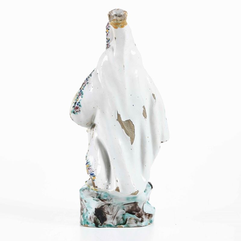 Altezza: cm 25,5. Conservazione: sbeccature ai bordi e cadute di smalto al manto posteriormente