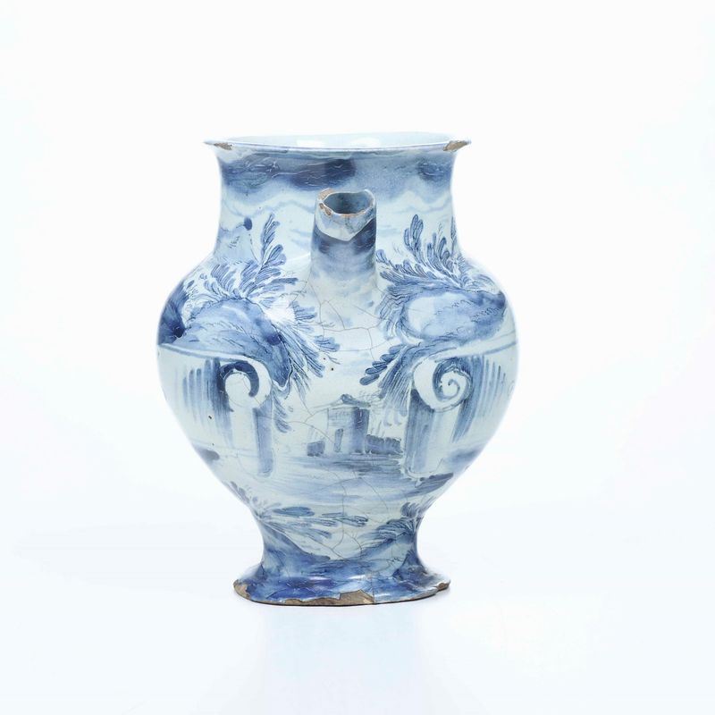 Orciolo decorato, con eleganza pittorica, in monocromia blu di cobalto