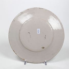 Diametro: cm 24,3. Conservazione: ottima; un salto di smalto alle ore 9 e minime sbeccature al bordo