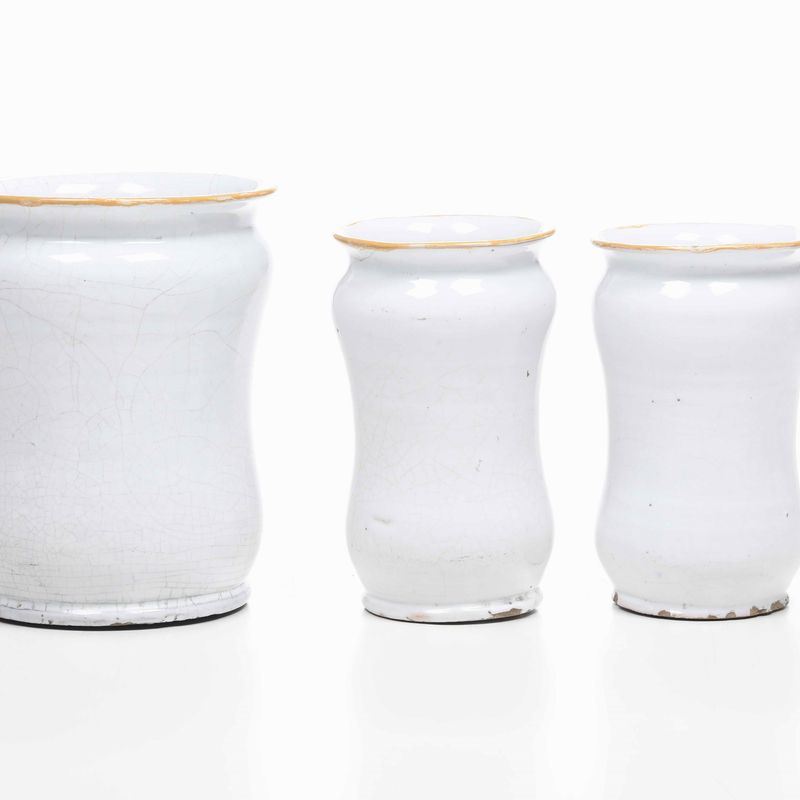 Tre rari albarelli Pescolanciano, Fabbrica del Duca di Pescolanciano, fine del XVIII secolo