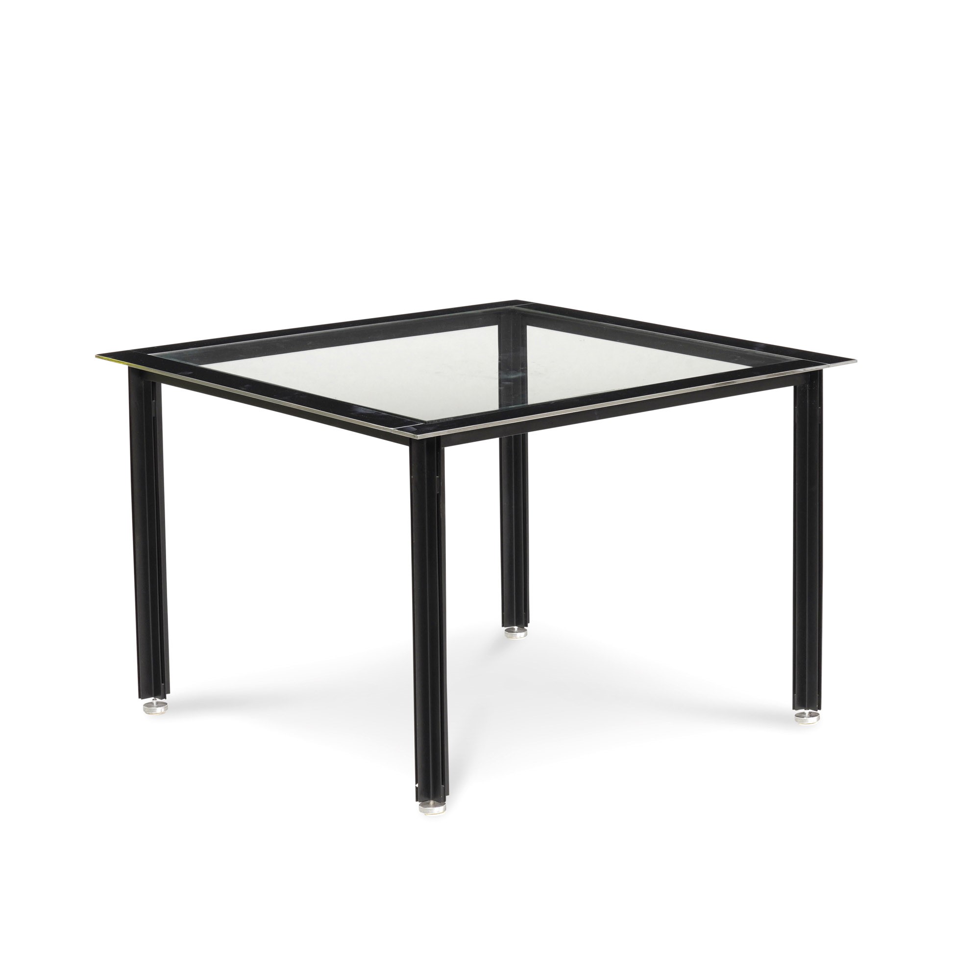 Struttura in metallo laccato e piano in vetro.