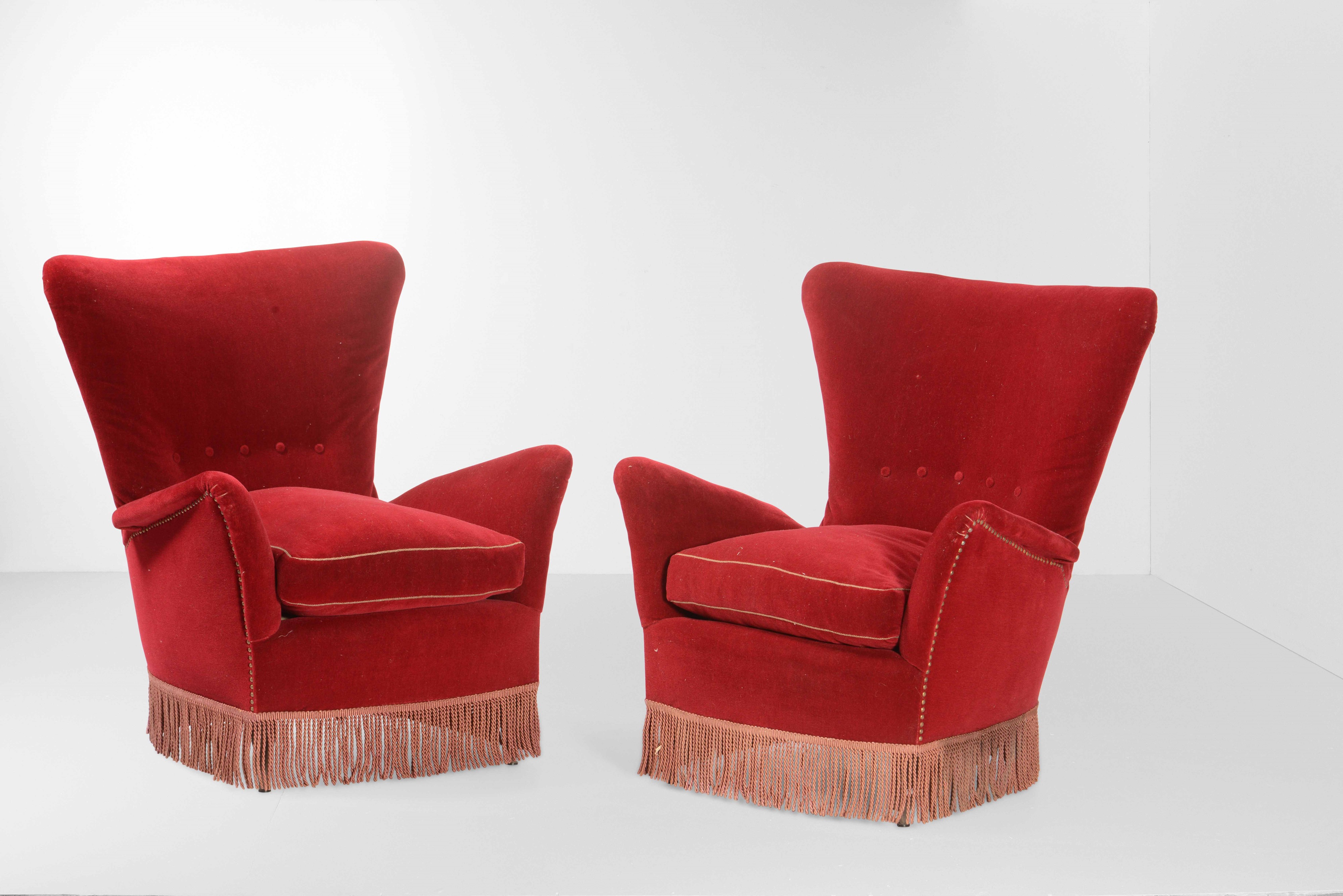 Set composto da un divano e due poltrone. Struttura in legno e rivestimenti in tessuto.