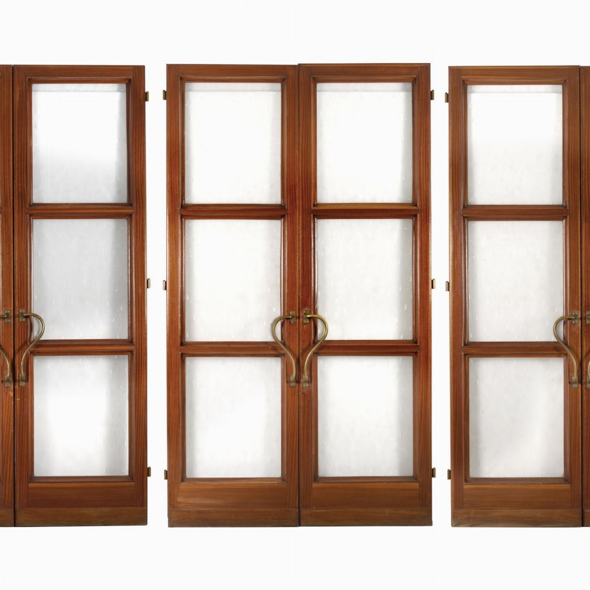 Struttura composta in due ante in legno e vetro e maniglia sagomata.