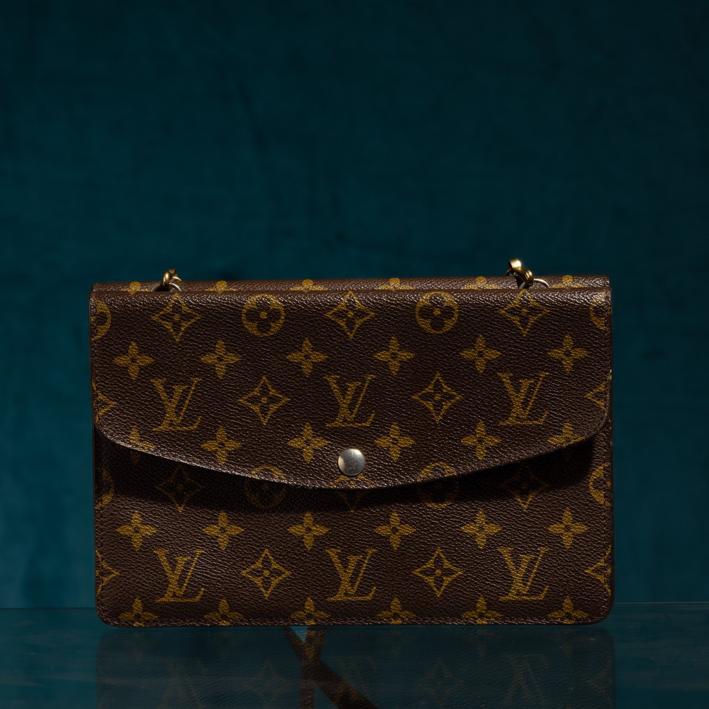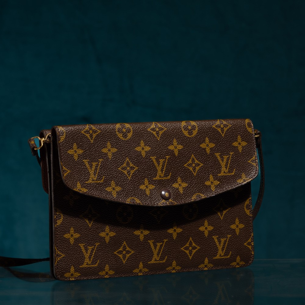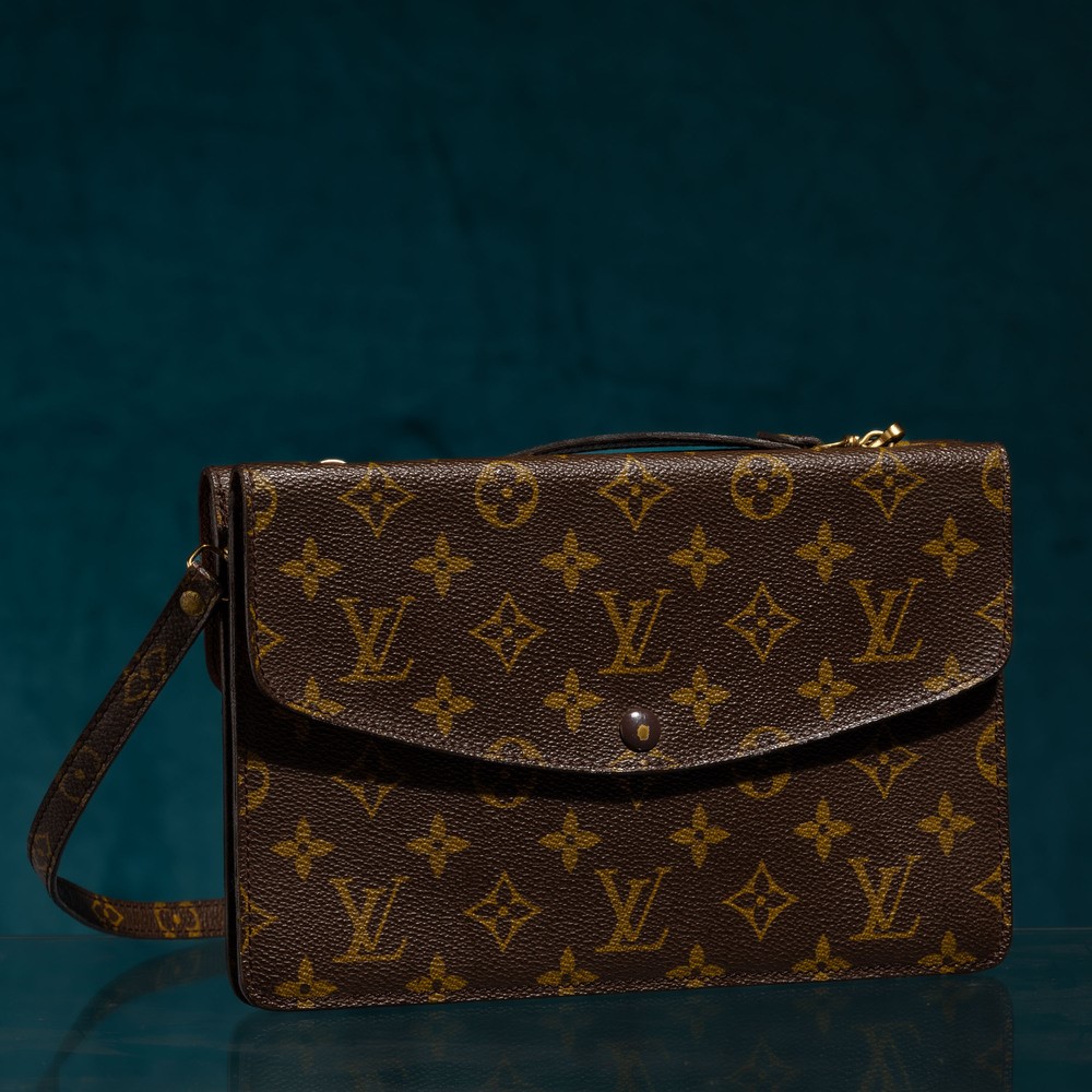 Louis Vuitton lotto di due Pochette, una borsa tracolla double face, 24 x 16 cm, segni di usura, una pochette/bustina con cerniera,17 x 13,5 cm segni di usura
