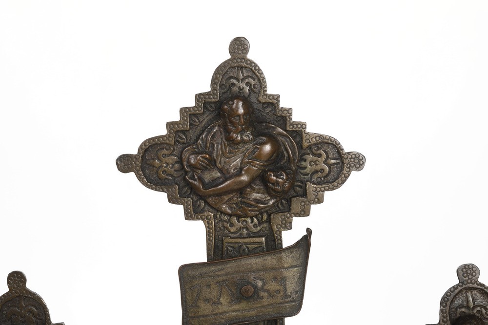 Sul fronte Evangelisti in rilievo. Nella parte posteriore antico restauro sul braccio verticale