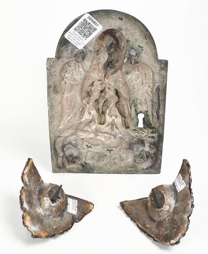 Coppia di angioli e sportello da ciborio. Rame sbalzato, XVIII secolo