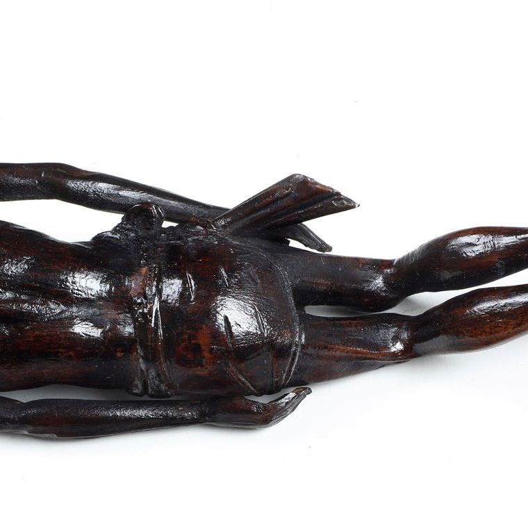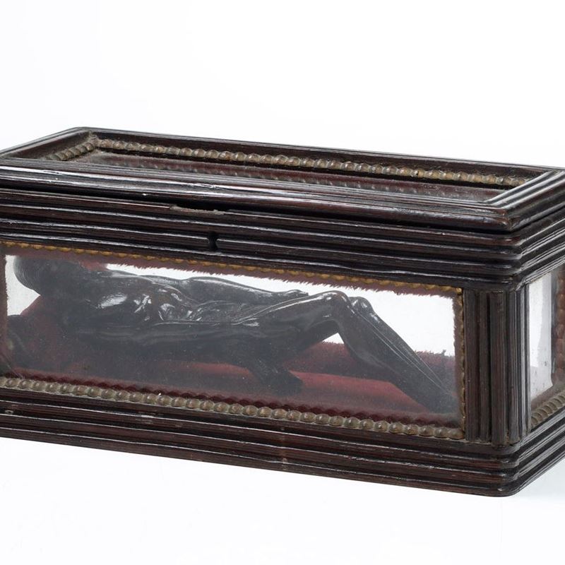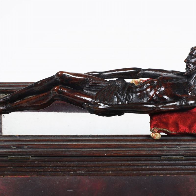 Cristo deposto in legno entro teca. XVII-XVIII secolo