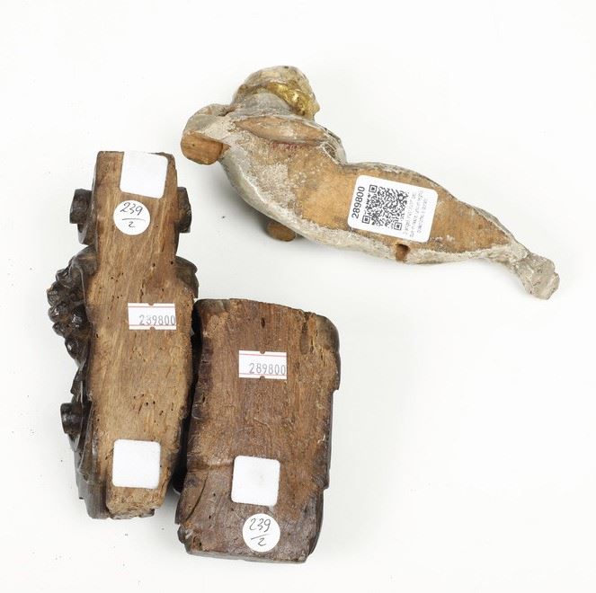 Tre angeli, XVI/XVII secolo, due in noce, uno in legno policromo e dorato