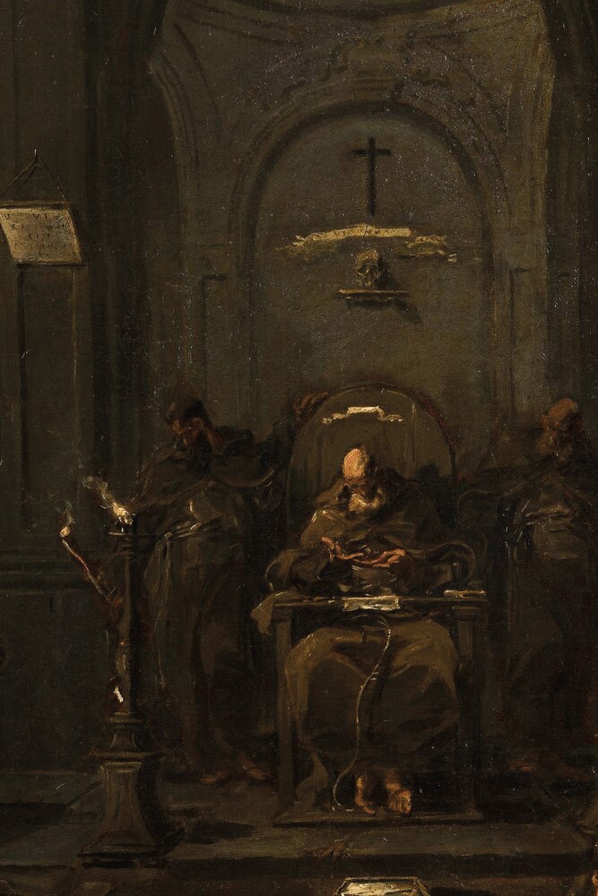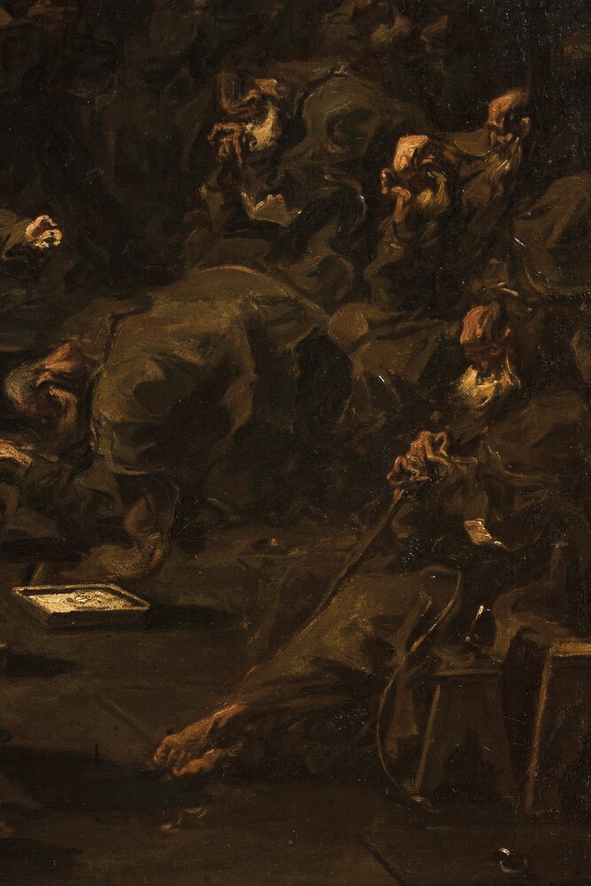 Il soggetto raffigurato, come testimoniato anche dal biografo Carlo Giuseppe Ratti, è uno tra più trattati da Magnasco ed è fortemente legato al contesto sociale dell’epoca, in particolare modo per quanto riguarda il feroce dibattito sugli ordini religiosi.