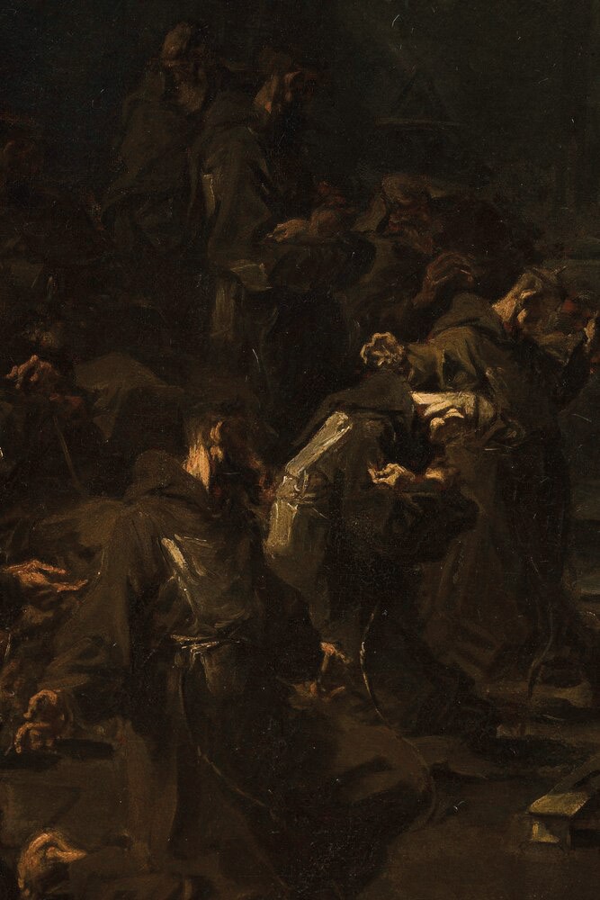 Accusati di corruzione, questi ultimi furono infatti protagonisti durante quegli anni di un’ondata di riforme basate sugli ideali evangelici di spiritualità e povertà, promuovendo uno stile di vita semplice, basato sul lavoro e la preghiere, e di cui l’artista ci restituisce un’immagine fedele ma altamente suggestiva all’interno delle sue opere.