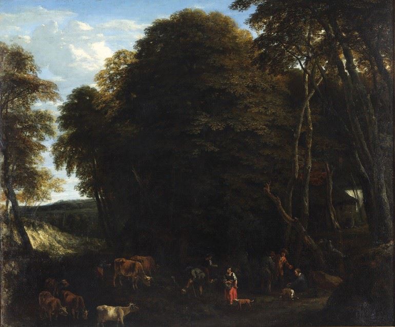 veda cfr. Y. Thiery, Les Peintres Flamands de Paysage au XVII Siecle. Le baroque anversois et l'école burelloise, Bruxelles 1987), di cui Huysmans può considerarsi un epigono, condividono in qualche modo il percorso intrapreso dai colleghi olandesi (un nome per tutti, quello di Jacob van Ruysdael), i quali peraltro interpretano la natura in chiave più decisamente realistica e rinunciano quasi del tutto alla componente umana, laddove i fiamminghi rimangono più ancorati alla loro tradizione narrativa, lasciando spesso nei loro paesaggi un posto a squarci di vita contadina. Lo vediamo in questo stesso dipinto che accoglie in primo piano pastori con i loro armenti nei pressi di una fattoria (la si intravvede, arretrata, in mezzo agli alberi sulla destra): un momento quotidiano calato in una dimensione altrimenti senza tempo. (…)”