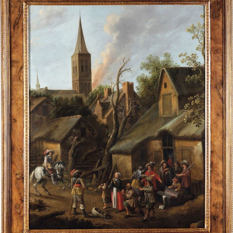 “ (…) Nell'ambito della produzione di Droochsloot che, dato il successo incontrato, va assestandosi su un tipo di composizione standardizzata, con la tipica veduta di villaggio percorsa centralmente da una strada costellata da un popolo minuto, quest'opera rivela una freschezza pittorica ed un'originalità che lasciano pensare ad un momento non troppo avanzato della lunga carriera dell'artista, probabilmente tra gli anni '30 e 40. Le figure, che col tempo diverranno rigide ed un poco legnose nei gesti, sono qui rese con grande scioltezza e minutamente descritte. Il formato verticale, inoltre, costituisce quasi un unicum.