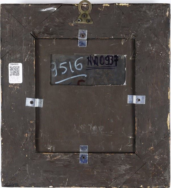 "Questo delizioso rame appartiene all'ambito dell'importante filone del rovinismo napoletano di primo Settecento, che vede, tra i più significativi rappresentanti, Leonardo Coccorante. A lui riconduce lo stile del quadretto qui esaminato, dove, oltre l'imponente rovina di un arco maestoso in ombra che domina il primo piano, si apre la veduta di un bacino lacustre circoscritto da un'arcata coronata da balaustra e statue, oltre cui si delineano i profili montuosi all'orizzonte. Piccole figure si muovono nella fascia ombrosa in primo piano, mentre altre compaiono nei piani medi e di fondo, inondati da una luce chiara e dorata. Gusto pittoresco e scenografico si incontrano restituendoci un'immagine suggestiva, a metà tra il capriccio rocaille e la veduta più attenta al dato naturale che andava affermandosi a Napoli nei primi decenni del Settecento."