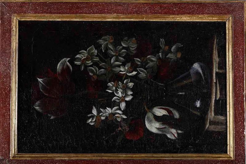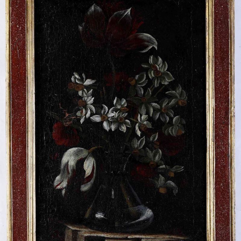 Scuola del XVII secolo Natura morta con vaso di fiori