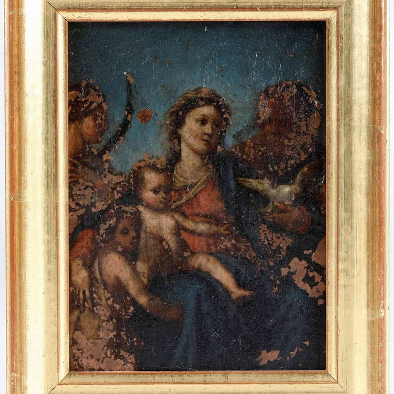 Scuola del XVII secolo Sacra Famiglia con San Giovannino e una santa