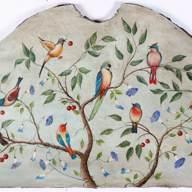 Scuola veneta del XIX secolo Coppia di pannelli con pappagallini sui rami