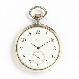 Orologio da taschino "Longines" del 1910 circa con cassa in argento, movimento con scappamento ad ancora, quadrante in smalto bianco