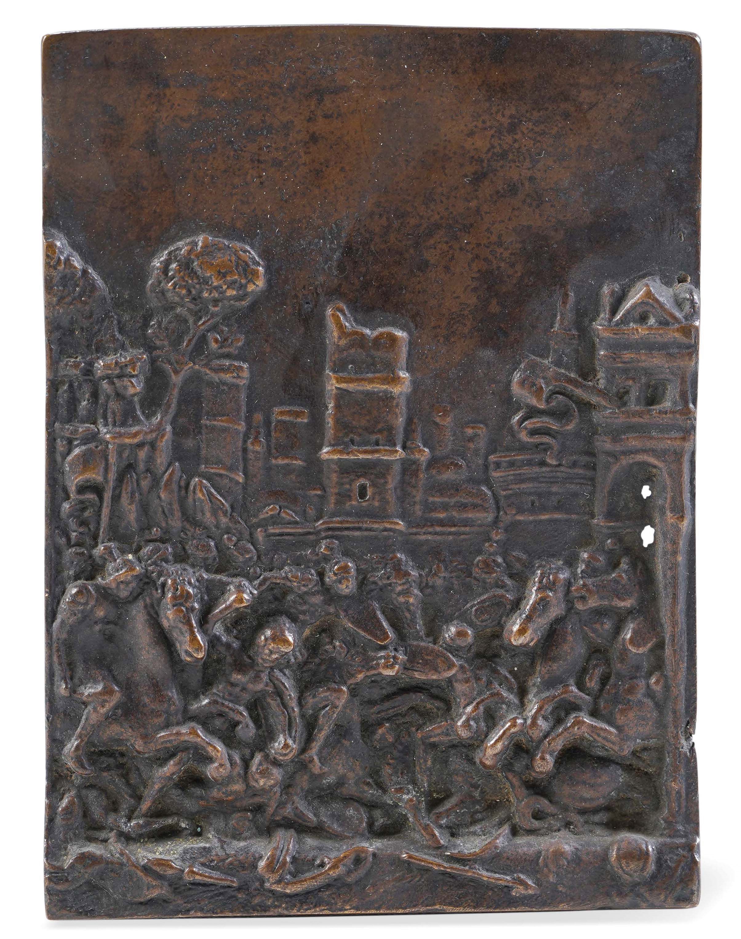Combattimento alle porte di una città. Fonditore rinascimentale da Andrea Briosco, detto il Riccio (1470-1532)