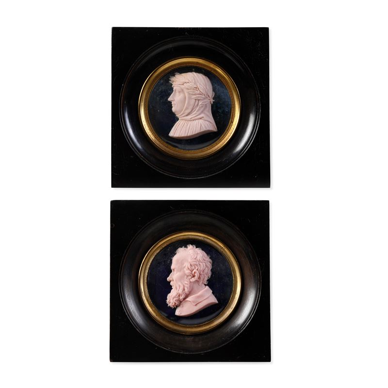 Due profili di Michelangelo e Petrarca. Arte Neoclassica, Toscana XVIII-XIX secolo. Ceroplasta prossimo a Giovanni Antonio Santarelli (Monoppello 1758 Firenze 1826)