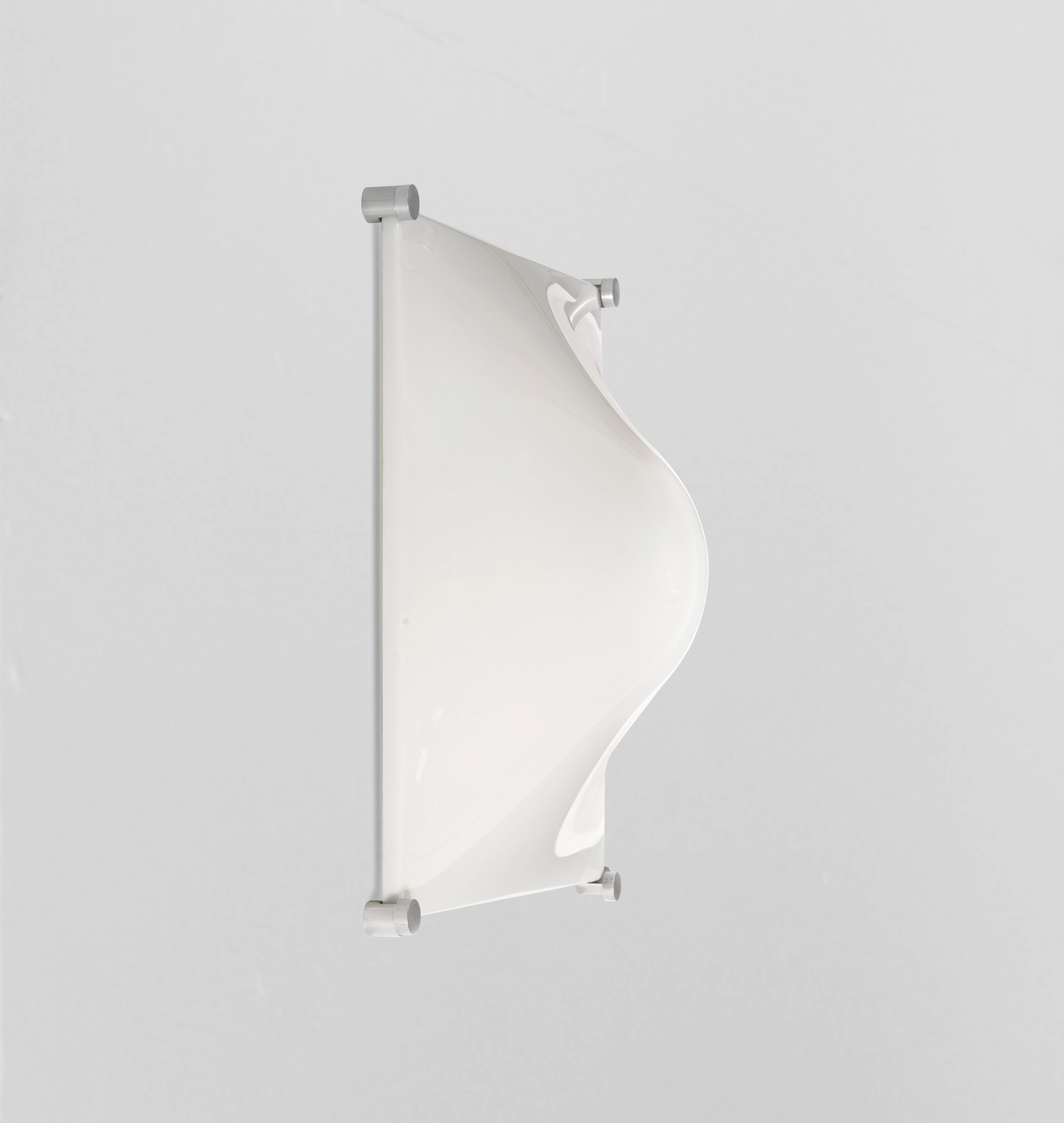 Diffusore in metacrilato opalino stampato, supporti in alluminio.