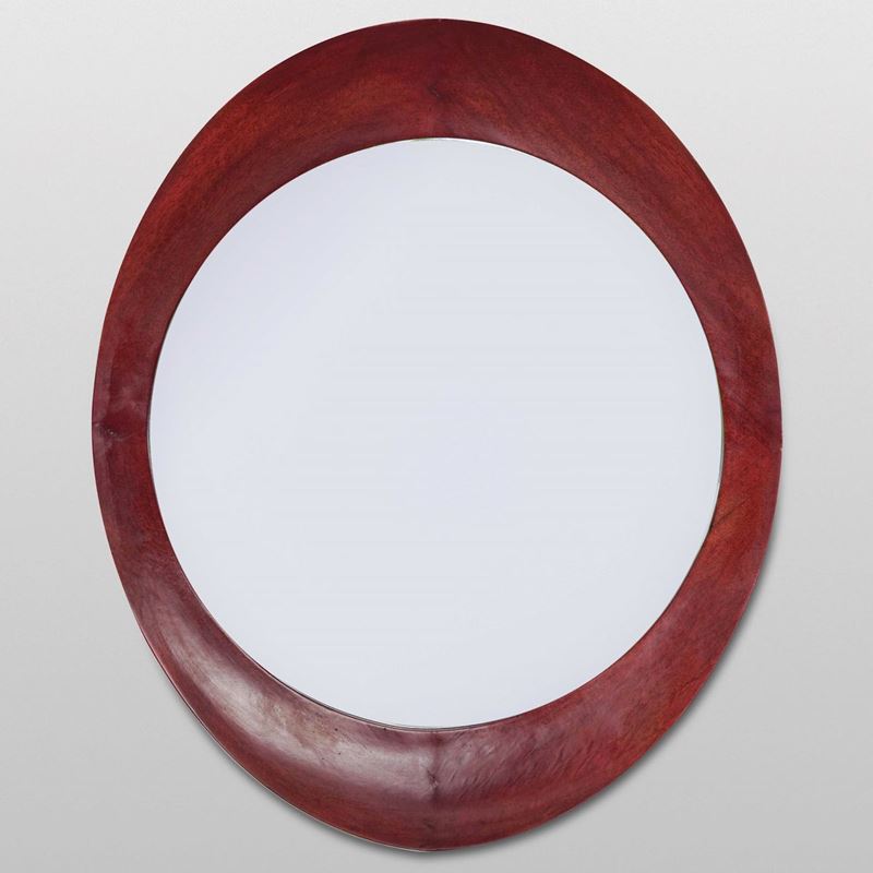 Struttura in legno sagomato e cristallo specchiato.