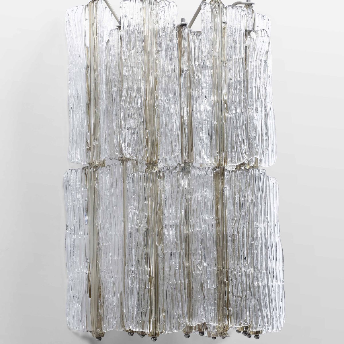 Struttura in metallo ed elementi modulari in vetro di Murano.