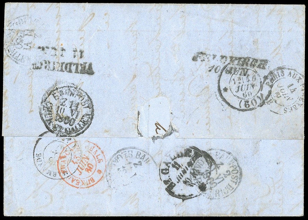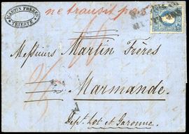1860, Austria, lettera da Trieste per Marmande (Fr.) del 9 o 10 giugno 1860