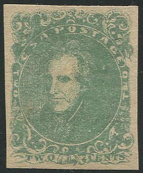 Andrew Jackson, 2c. green (Scott 3), slight crease, unused, original gum. Very fine. A. D.