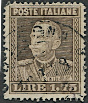 1929, Regno d’Italia, lire 1,75 V.E. III denti 13 1/2