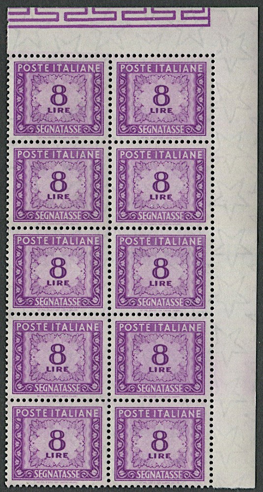 1955/1981, Repubblica italiana, Segnatasse, lire 8 lilla con filigrana "stelle" del primo tipo