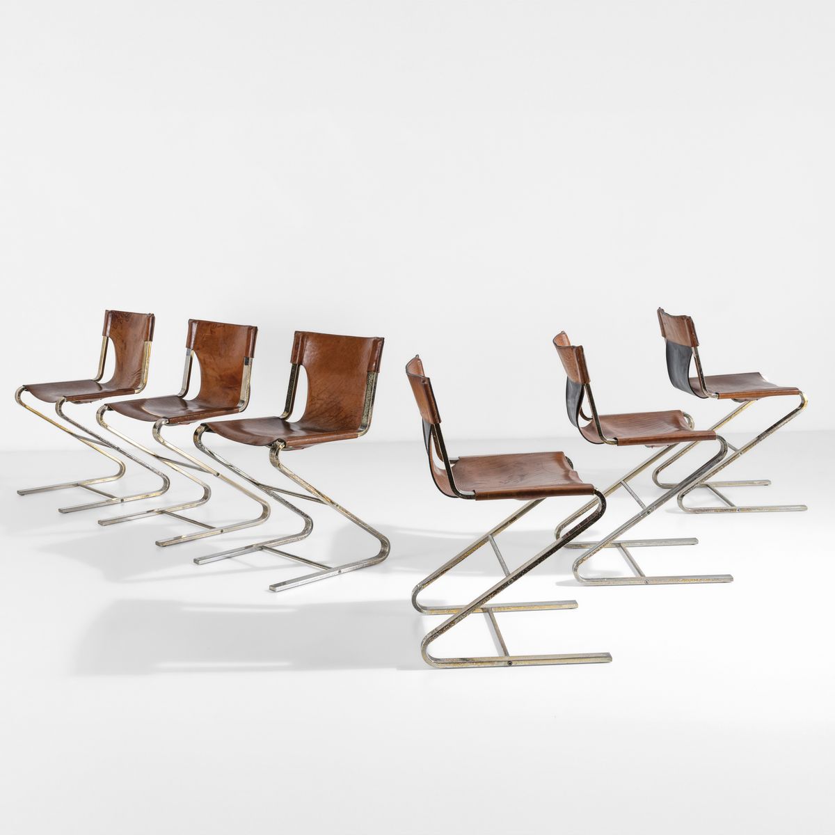 Struttura in metallo cromato e rivestimenti in pelle.