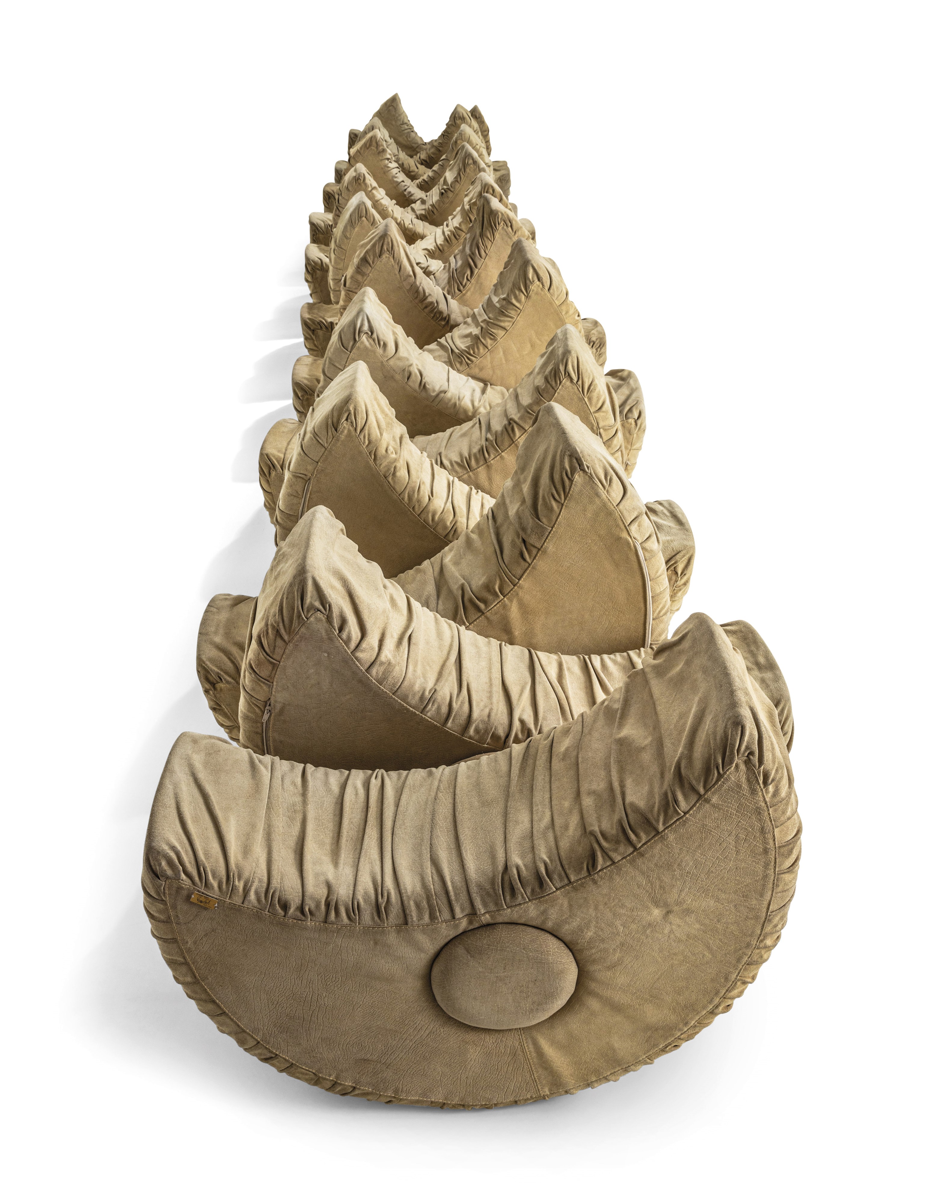 Diciannove moduli con struttura in metallo e rivestimenti in pelle.