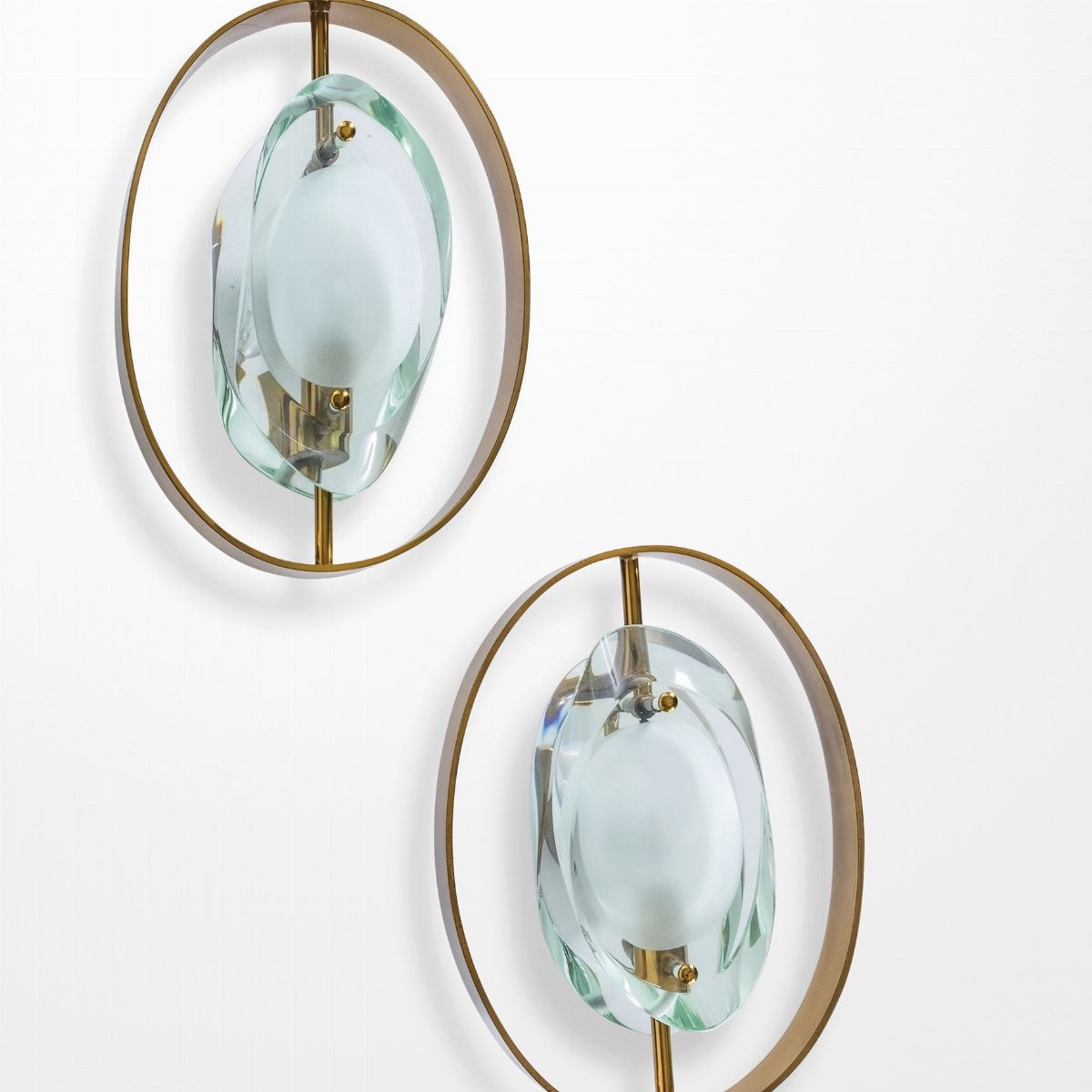 Struttura in ottone. Diffusori composti da due cristalli sagomati, molati e satinati internamente.