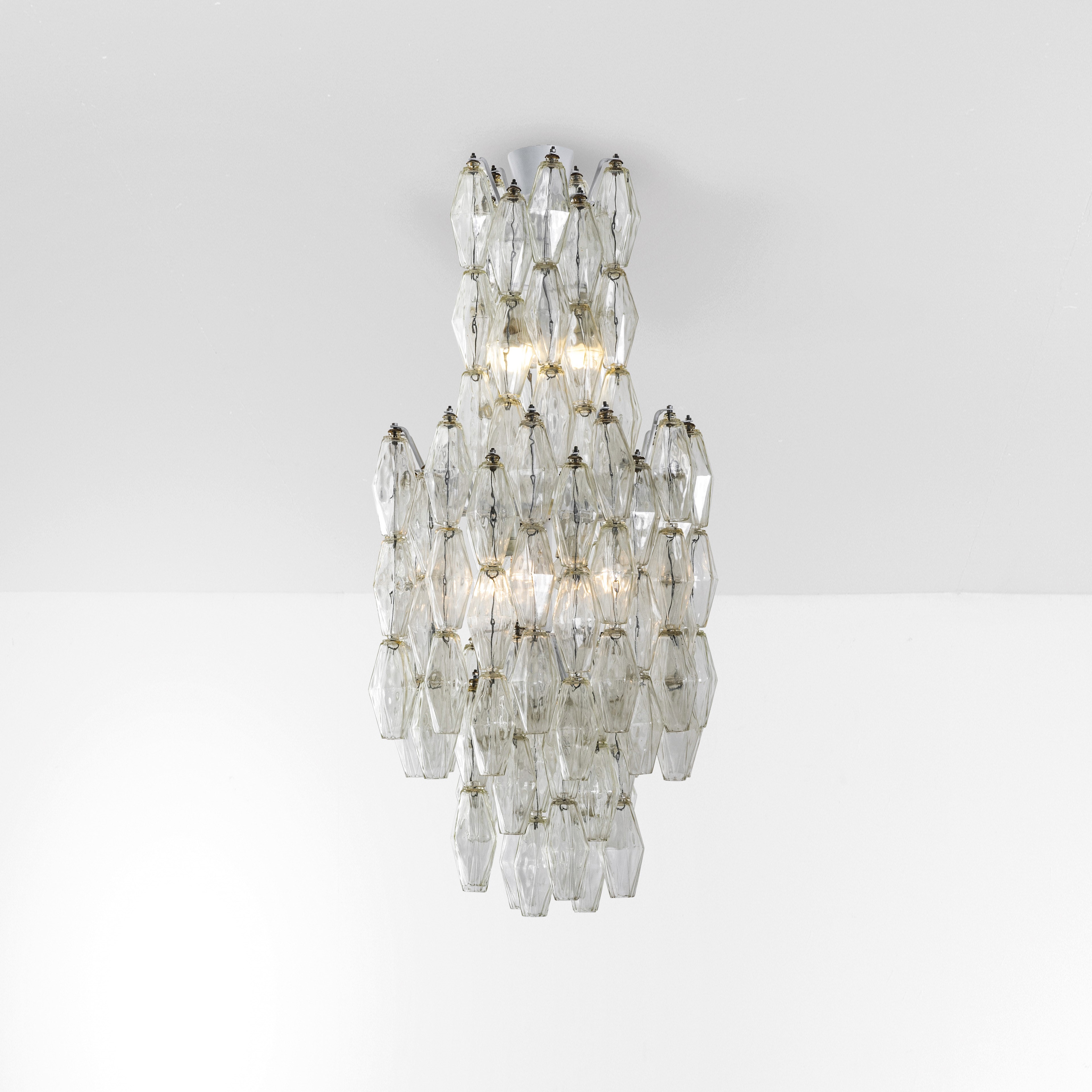 Struttura in metallo laccato. Elementi diffusori in vetro di Murano della serie poliedri.