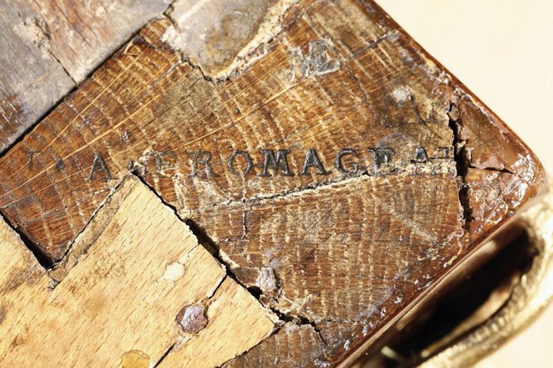 Commode "tombeau" lastronata e filettata in palissandro ed altre essenze pregiate. Francia, XVIII secolo, stampigliata T. A. Fromageu